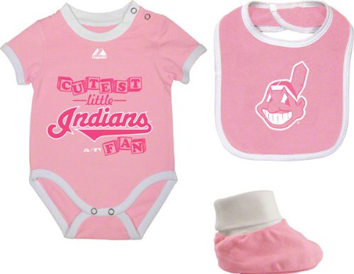 Triple Play Bib, Bootie, and Creeper Set. Dress your little Indians fan is some fashionable threads with this Cleveland Indians Infant Pink Triple Play Bib, Bootie, and Creeper Set. Brought to you by Majestic, this Cleveland Indians combo pack comes with a bib, bootie, and creeper. Have the youngest member of the domestic appear to be a die-hard fan with this Cleveland Indians Infant Pink Triple Play Bib, Bootie, and Creeper Set..